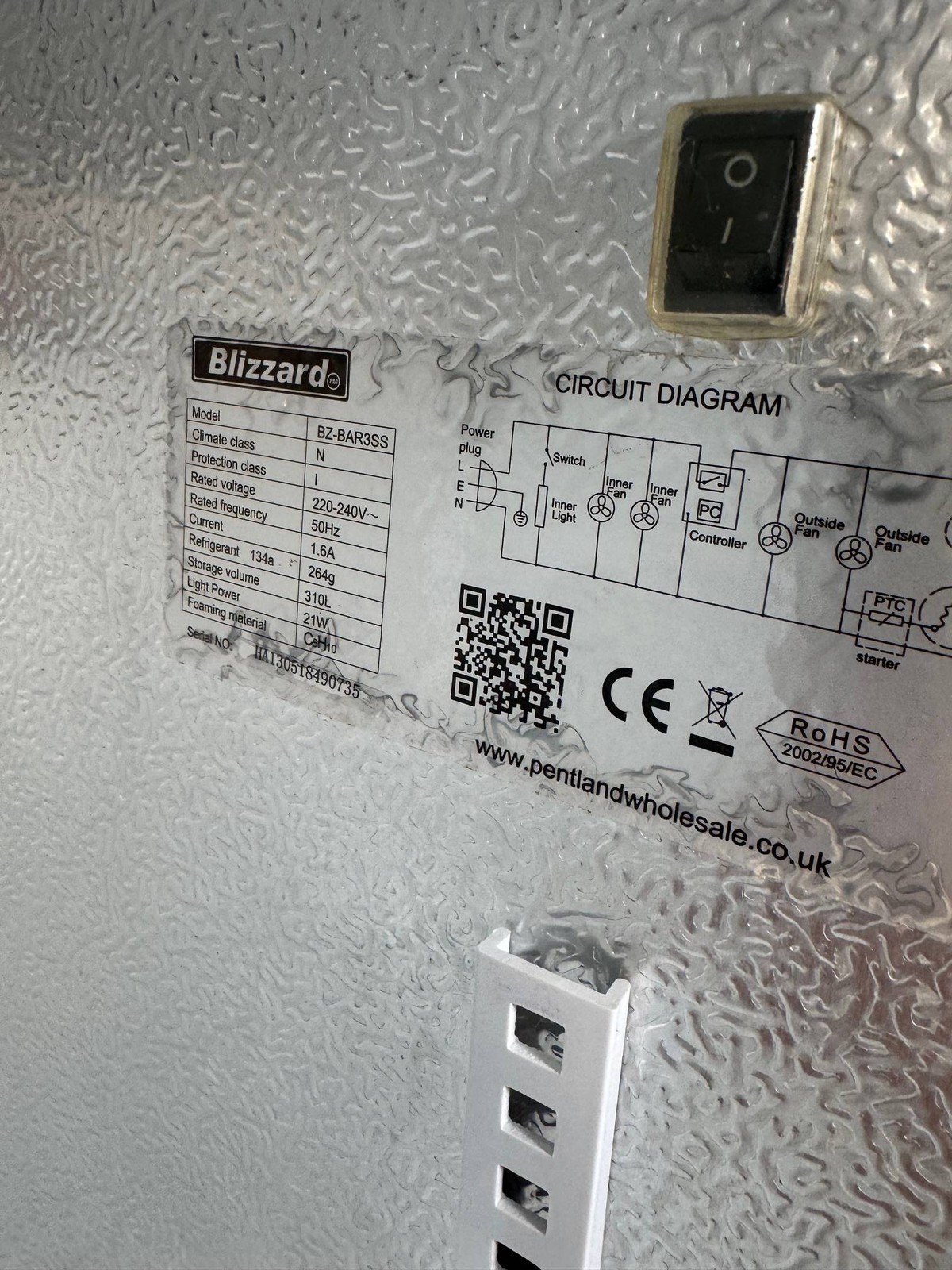 Blizzard BAR3 Triple Door Bottle Cooler.Selling due to closure of wedding venue business.