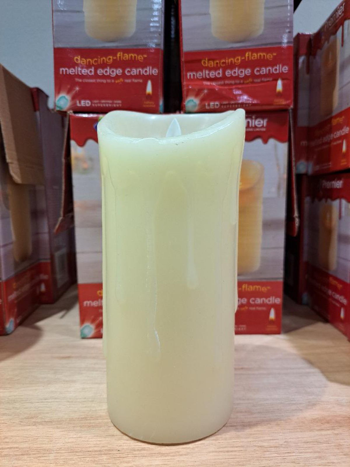 A collection of LED dancing flame, real wax candles, and rechargeable batteries, in the following sizes:23 off, 7.5cm x 13.0cm