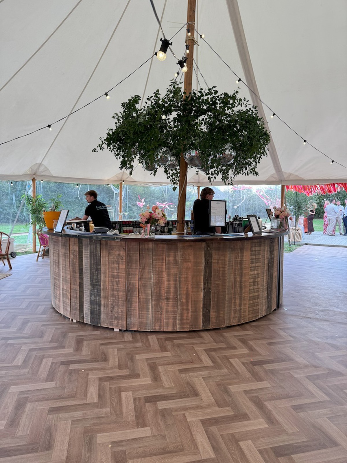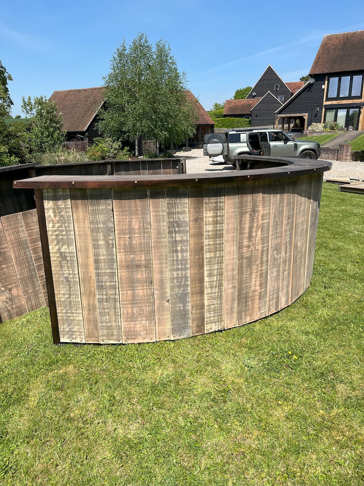4m rustic circular bar.4 large sections and 2 small sections with matching access flap to complete the circle. The flap lifts off for easy access but stops anyone “falling” through the gap Del Boy style!