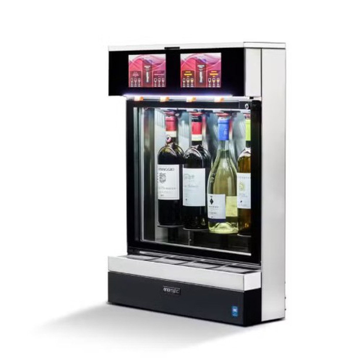 Preserve four wines at optimal temperatures (6-18°C) Ultra-silent, energy-efficient refrigeration. Quick, easy bottle loading. Choose nitrogen or argon preservation. Up to 3 programmable doses per bottle.