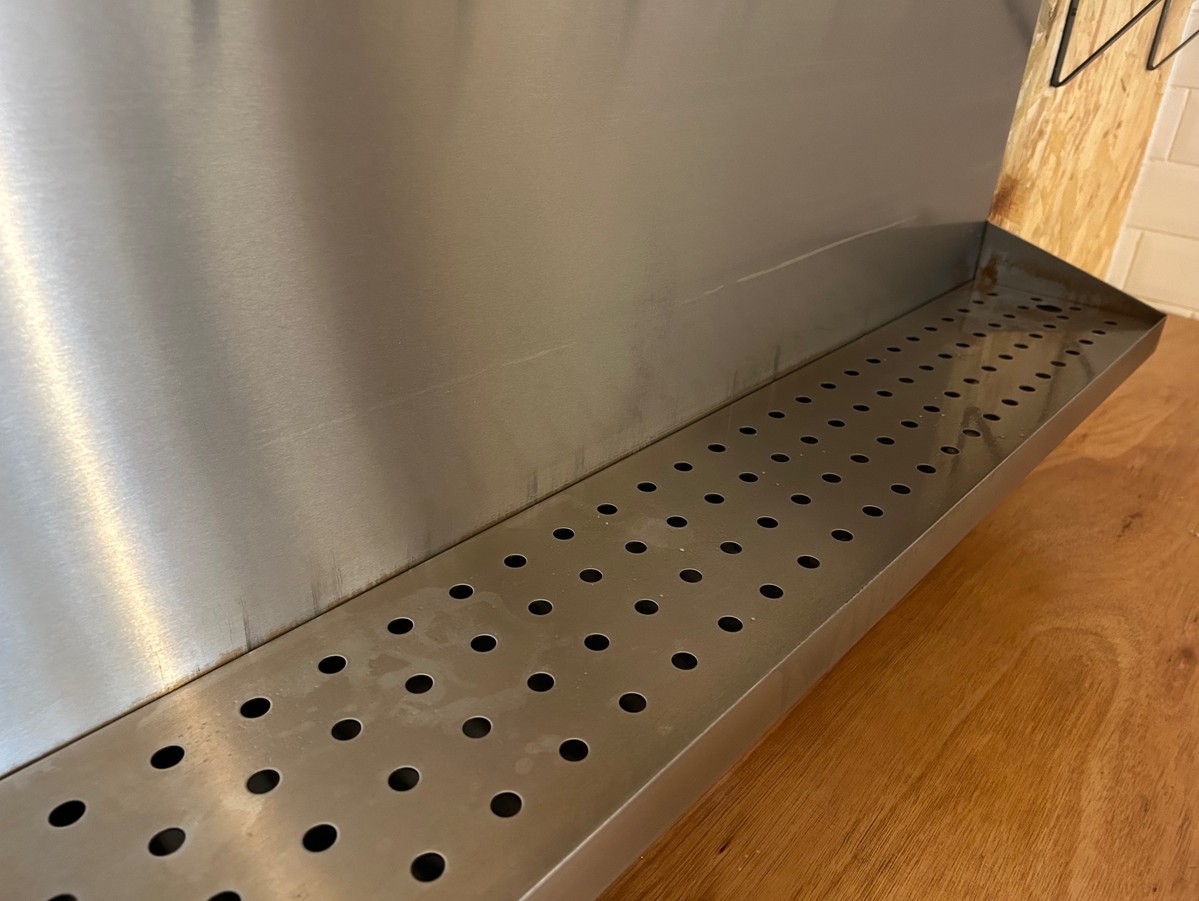 Custom made 8 Tap Wall Keg Beer Dispenser with drip tray.Removable perforated grate for quick and easy cleanup.